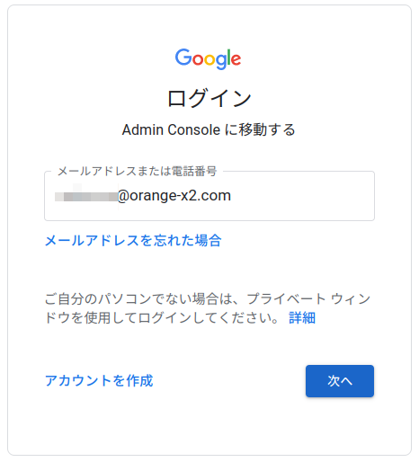 Admin ConsoleのURLはこちら。管理者の方はブラウザのブックマークに入れておきましょう。