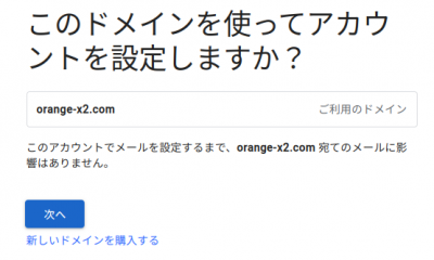 ドメインを入力します。今回はすでに持っている.comを使って設定します。