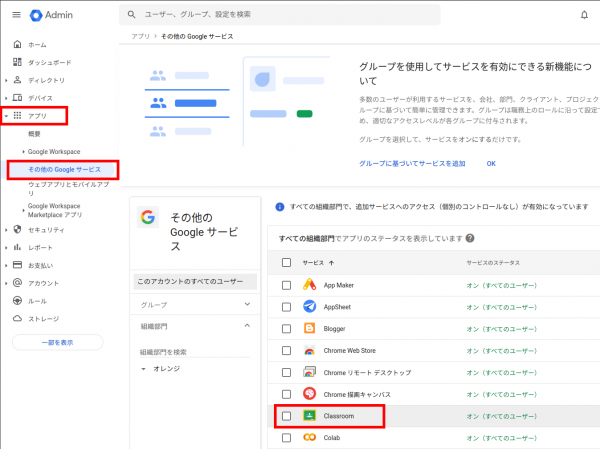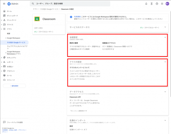 Google Workspaceの設定でClassroomの外部ドメインの招待を許可